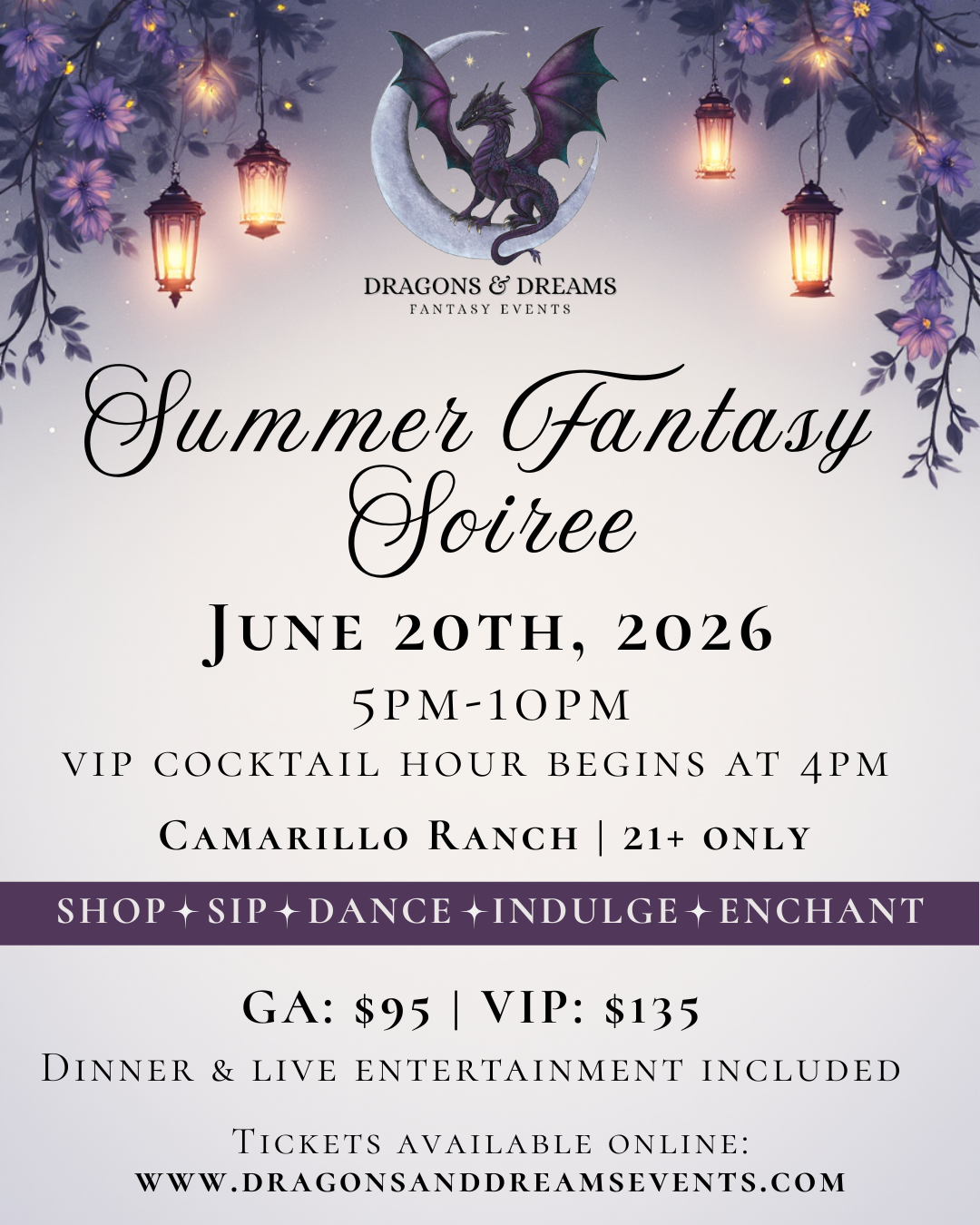 Experience an enchanting night under the stars at the Summer Fantasy Soirée, an adults-only immersive event at Camarillo Ranch. This elevated evening blends dark romantic fantasy with live entertainment, dancing, a magical vendor marketplace, and interactive experiences throughout the venue.