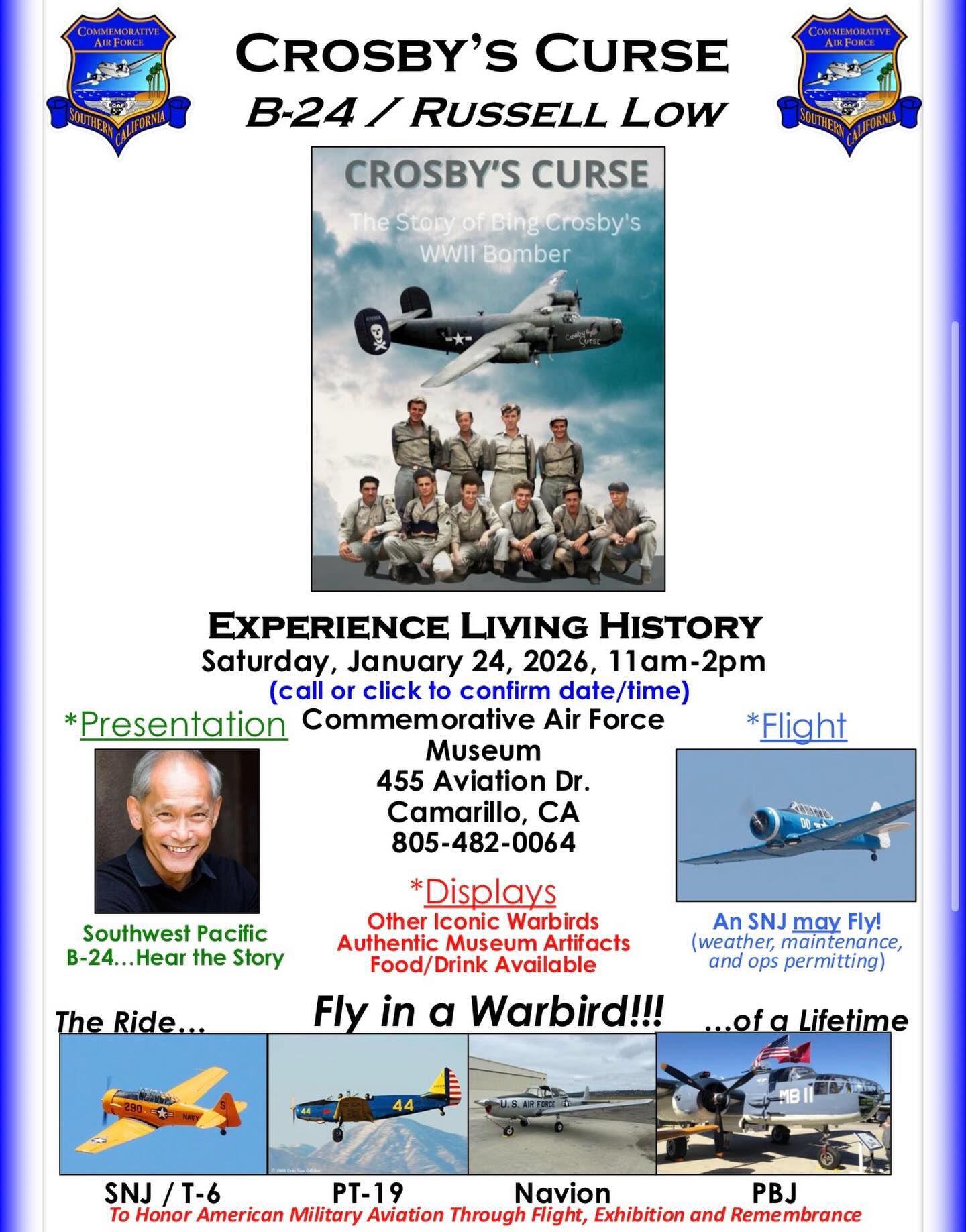 CAF SoCal Aviation Museum 455 Aviation Drive, CamarilloSaturday, June 28, we're honored to host author Rich Martindell for a presentation on his book, GAME OF DRONES! A former Air Force fighter pilot, Rich transitioned to “fly” MQ-9 Reaper drones, and captured in his book Game of Drones, his experiences and impressions along the way. He'll compare his experiences of flying the F-4 … Continued